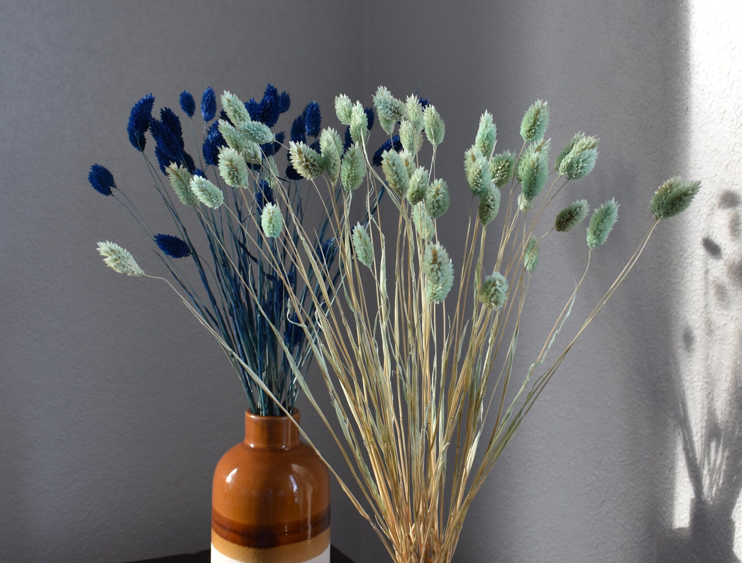 Phalaris naturalnie występuje w odcieniach kremowym, beżowym, jasnozielonym, ale bardzo często spotyka się phalaris barwiony – tak jak w naszym sklepie: biały, delikatny żółty, pudrowy róż, fioletowy, granatowy czy jasny zielony.